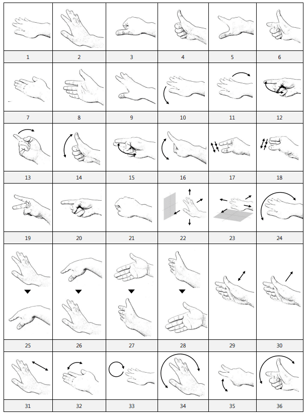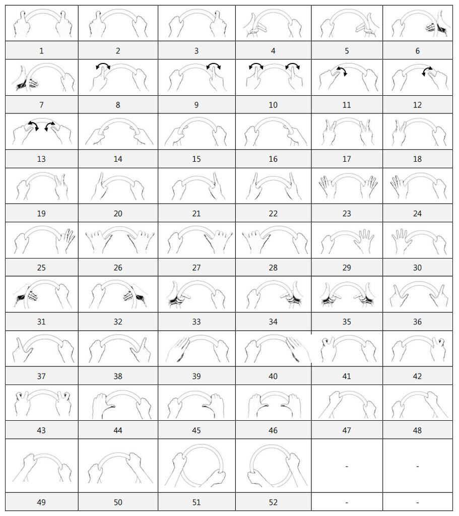 3. One Hand Space Gestures, influenced by users' familiarity with existing device interactions, showed a preference for four-directional gestures (up, down, left, right).